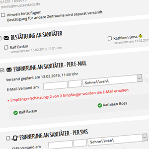 Bislang war für Dienste mit mehreren Schichten nur die Auswahl eines Einsatzleiters möglich, was in der Realität oft anders aussah. Heute Nacht werden wir dazu ein Update veröffentlichen, danach kann für jede Schicht ein separater Einsatzleiter festgelegt werden. Außerdem haben wir die Bestätigungen an eingeteilte Helfer und den Veranstalter optimiert. E-Mails und SMS werden nun individuell für jeden Zeitraum versandt, so dass Helfer nur noch über die für sie relevanten Schichten und Abschnitte informiert werden. Das gleiche gilt für Erinnerungen zum Dienst, die nun gezielt gewählt werden können.
