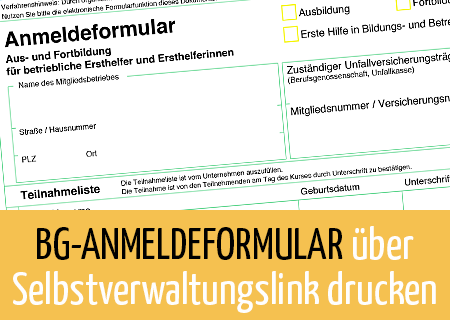 BG-Anmeldeformular über Selbstverwaltungslink drucken