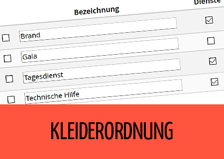 Bei Diensten und Terminen besteht die Möglichkeit, eine Kleiderordnung zu hinterlegen. Bisher stand dazu ein Freitextfeld mit Liste der zuletzt verwendeten Einträge zur Verfügung.