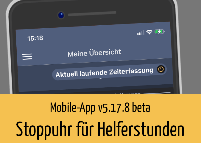 Die neue Beta-Version (v5.17.8) der HiOrg-Server Mobilgeräte-App hat eine praktische Timerfunktion im Gepäck. Damit könnt ihr Helferstunden ganz einfach mittels einer Stoppuhr erfassen. Ist die Arbeit beendet, reicht ihr die erfasste Zeit mit Angabe zum Anlass per Knopfdruck ein. Fertig.