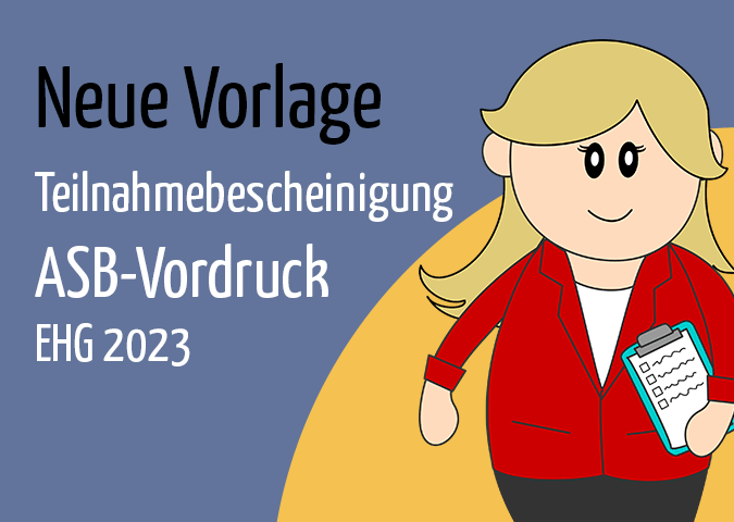 Für Gliederungen des Arbeiter Samariter Bundes (ASB) haben wir eine neue Vorlage für Teilnahmebescheinigungen in HiOrg-Server KURSE hinterlegt. Die Vorlage ist zum Eindrucken in den neuen ASB-Vordruck EHG 2023 (Erste-Hilfe-Grundlehrgang) vorgesehen.