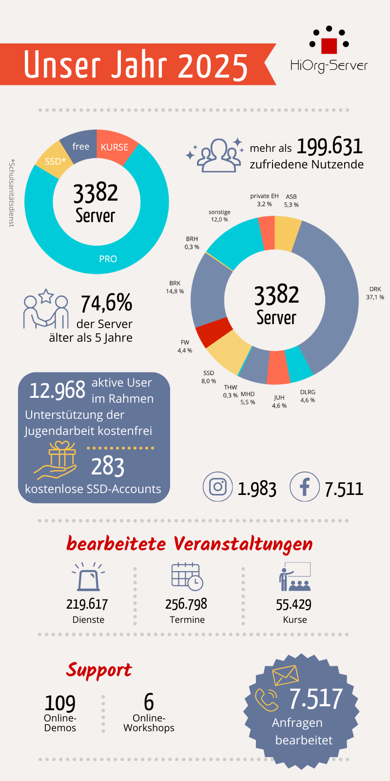 Danke für eure Zeit, eure Ideen und eure Offenheit. Ob in Umfragen, Interviews oder in persönlichen Gesprächen, ihr habt uns wertvolle Einblicke gegeben, die uns durch das ganze Jahr begleitet haben. Diese Rückmeldungen helfen uns dabei, HiOrg-Server kontinuierlich weiterzuentwickeln und noch praxisnäher auf eure immer wieder wechselnden Bedürfnisse auszurichten. Es hat uns besonders gefreut, einige von euch auch persönlich kennenzulernen und noch direkter zu erleben, was euch bewegt und wo wir euch unterstützen können.